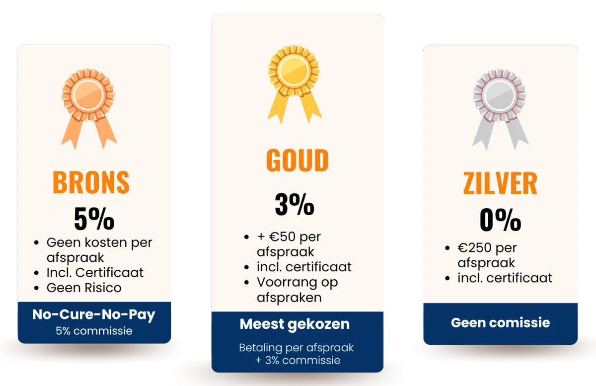 Heb je een deal? Dan pas betaal je commissie op basis van je gekozen pakket.